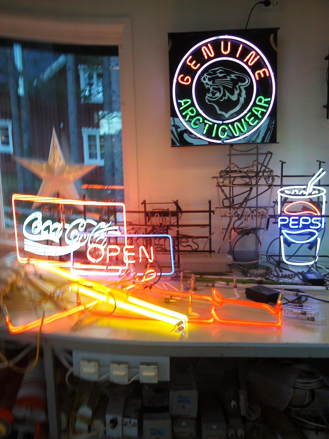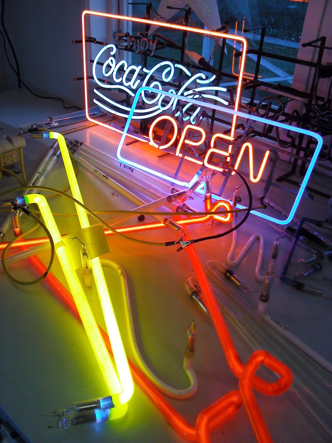 Luft bestod av kväve, syre och en procent ädelgaser, framförallt neon och argon. Vid framställnings-processen av syrgas blev ädelgaserna över och Geoges Claude funderade på ett sätt att få användning av dem. Några år tidigare hade vetenskapsmannen C Mc Farland Moore utvecklat ett ljusrör.